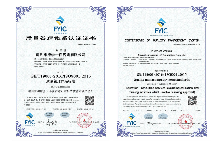 品質(zhì)為王!威學(xué)一百榮獲ISO9001質(zhì)量管理體系認(rèn)證證書!
