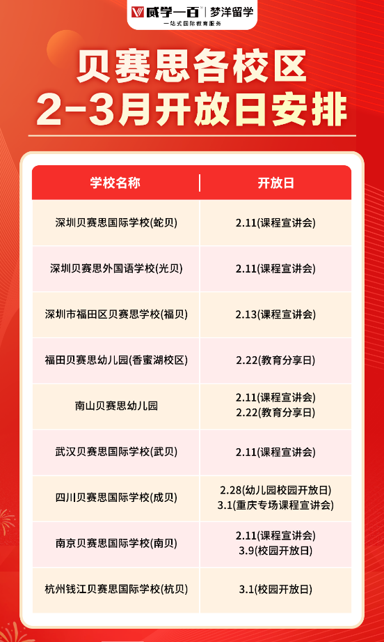 貝賽思各校區2-3月開放日安排來啦~感興趣的家庭記得報名,備考規劃可私我了解